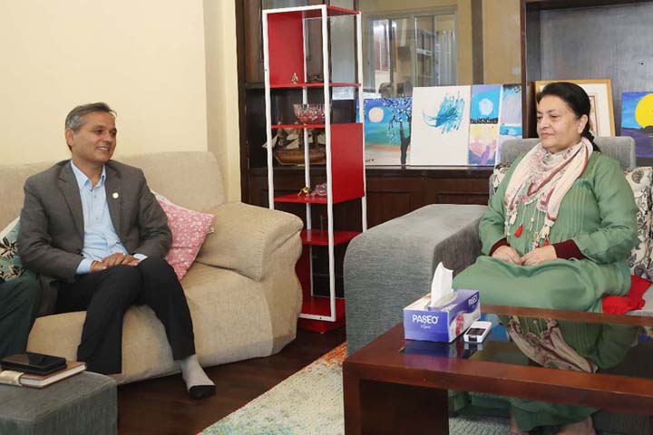 गृहमन्त्री ओमप्रकाश अर्यालं थौं पूर्वराष्ट्रपति विद्यादेवी भण्डारीलिसे नापलानाः खँल्हाबल्हा यानादीगु दु। गृहमन्त्री अर्यालं बालुवाटारया पूर्वराष्ट्रपति भण्डारीया निवासय्...