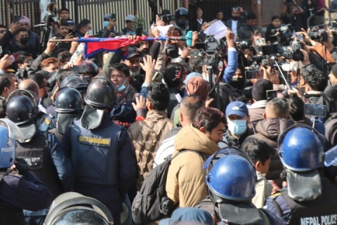 माइतीघर मण्डलाय् प्रदर्शन याःपिं च्याम्ह प्रहरीया नियन्त्रणय्