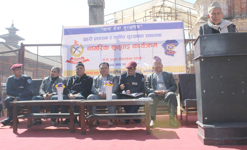 ज्याझ्वःया शुरुवाटय् प्रभागया प्रमुख नापं प्रहरी निरीक्षक प्रकाश थापां प्रभागं बिया वयाच्वंगु सेवा, शान्ति सुरक्षाया सवालय्, जनमैत्री प्रहरी प्रशासन लिसें संस्कृति व सम्पदा संरक्षणय् प्रहरीया भूमिका विषयस सनुवाइ याय्गु धयातःगु खः ।