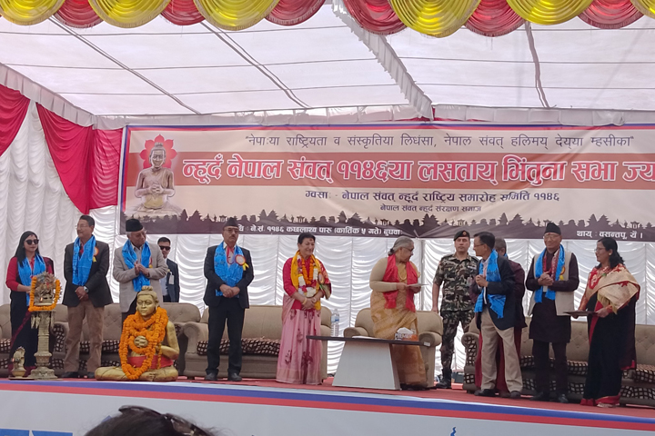 स्वनिगः दुने लिसें नेवाः बस्ती दुगु स्वनिगलं पिने नं थीथी खलः पुचलं नेपाल सम्वतया न्हूदँ समारोह बिस्कं बिस्कं हे आयोजना यानावःगु दु । म्हपूजाया दिनय् येँ, यल, ख्वप, किपू, थिमि, तोखालिसें थीथी थासय् न्हूदँयात थीथी कथंया ज्याझ्वः यानां लसकुस यासें समारोहया ग्वसाः ग्वयेगु याः । थुकथं बिस्कं बिस्कं न्ह्यानावःगु ज्याझ्वःयात गुलिसिनं नेवाःतय्सं न्हूदँयात हरेक थासं तःजिक लसकुस याःगु कथं नं कयाच्वंगु दुसा गुलिसिनं ला थ्वःचा थ्वःचा कुचा दःगु धकाः धायेत नं लिफः मस्वः । थ्व हे झ्वलय् न्हूदँया समारोह हनेत छगू संगठन (?) खनेदयावल, न्हूदँ राष्ट्रिय समारोह समिति । नामं हे सकसिनं छगू आशा खंकल, आः देय्न्यंकया न्हूदँ समारोह हनावःगु संघ, संगठनत छगू हे कुसा क्वय् मुनां राष्ट्रिय स्तरय् न्हूदँया समारोह हनीगु जुल । आशा ला थज्याःगु खत, तर आशा कथं वास्तविकता छु जुल ले ? छु न्हूदँ राष्ट्रिय समारोह समितिं देय्न्यंकया संस्था कःघाये फत ला ? कि येँ दुने च्वंगु संस्थातय्त तकं समारोहं पिने लाकाबिल ले ? न्हूदँ राष्ट्रिय समारोह समितिया ज्याखँ व पहःयात छक्वः आः दुवाले हथाय् हे जूगु खत ला !
