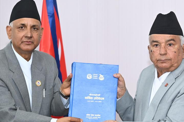 राष्ट्रपति रामचन्द्र पौडेलया न्ह्यने लोक सेवा आयोगया नायः माधवप्रसाद रेग्मीं आयोगया आर्थिक दँ २०८१÷८२ या वार्षिक प्रतिवेदन न्ह्यब्वयादीगु दु।