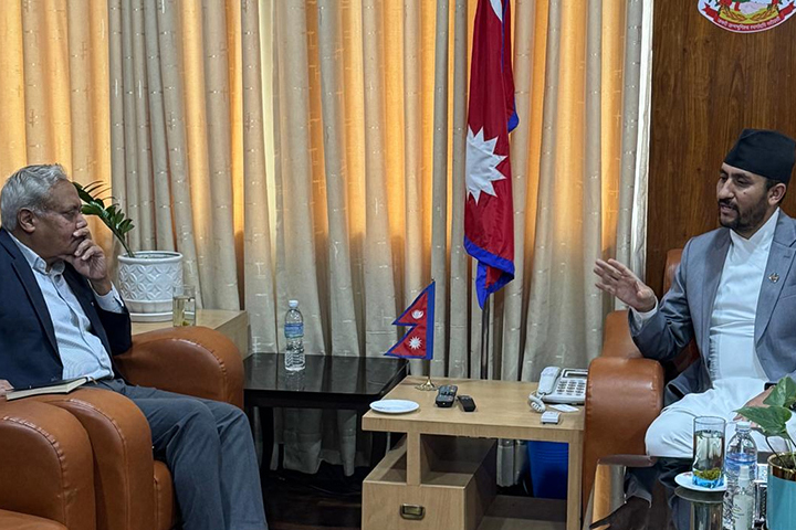 सञ्चार नापं सूचना प्रविधिमन्त्री जगदीश खरेलयात नेपाःया निंतिं भारतीय राजदूत नवीन श्रीवास्तवं नापलानादीगु दु।सिंहदरबारय् च्वंगु मन्त्रालय नापलायेगु झ्वलय् निगू देय् दथुइया सम्बन्ध, सहकार्य, थौंया अवस्थाया विषय सहलह जूगु धका मन्त्रालयं धाःगु खः।