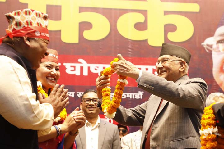 राष्ट्रियसभा गृहय् थौं ग्वसाः ग्वंगु ‘छेँ लिहाँवा राष्ट्रिय अभियान घोषणा’ ज्याझ्वलय् नेकपा (एमाले) या नायः केपी शर्मा ओलीं नेत्री झाँक्री, किसान श्रेष्ठलिसेंपिंत एमालेय् लसकुस यानादिल।एमालेया ज्याकुथिया छ्याञ्जे डा भीष्म अधिकारीं ‘छेँ लिहाँवाः राष्ट्रिय अभियान घोषणा’ यानाः सुरुआत जक जूगु व देय् न्यंकं थ्व अभियान न्ह्यानाच्वनीगु धयादिल।