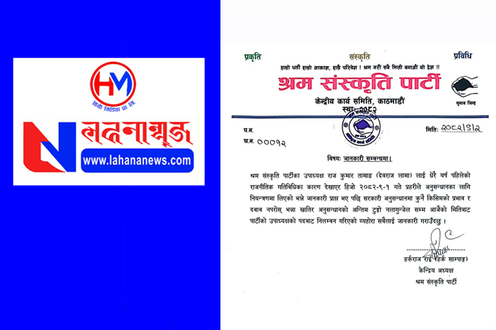 श्रम संस्कृति पार्टीया उपाध्यक्ष निलम्बित