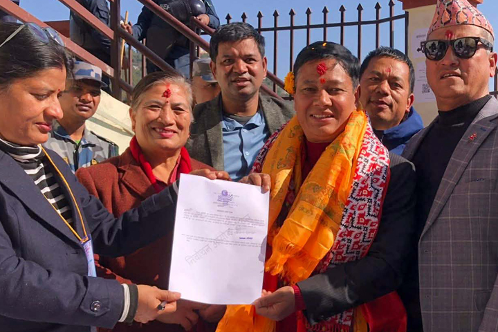 नेकपा एमालेया जिल्ला सचिव शाक्यं नागार्जुनस्थित निर्वाचन कार्यालय वना उम्मेदवारी दर्ता यानादीगु खः।
