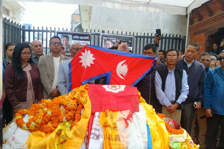 भाषा आयोगया दुजः माननीय मानन्धरयात अन्तिम श्रद्धाञ्जलि देछायेगु ज्याझ्वलय् भाषा आयोगया नायः डा. गोपाल ठाकुरया नं उपस्थिति दूगु खः।मदुम्ह मानन्धरयात अन्तिम श्रद्धाञ्जलि लिपा राजकीय सम्मानया लिसें शवयात्रा यानाः शोभाभगवती कर्णदीपय् थ्यंकूगु खः।मदुम्ह मानन्धरया अन्तिम श्रद्धाञ्जलि देछायेगु व शवयात्राय् थीथी ख्यःया आपालं व्यक्तित्वपिनिगु उपस्थिति दूगु खः।